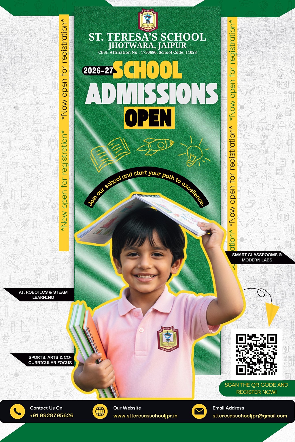Welcome to St. Teresa’s School, Jhotwara, Niwaru Road, Jaipur a vibrant educational institution guided and inspired by the noble mission of the Prabhudasi Sisters of Ajmer. Rooted in the values of love, service, and integrity, the school is committed to nurturing young minds and shaping them into compassionate, confident, and responsible individuals. With a strong focus on academic excellence, character formation, and holistic development, St. Teresa’s School blends modern learning with timeless virtues.